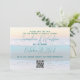 Ocean sunrise spara datum meddelande med QR-kod för webbplats. Den blå texten med namn och datumet bröllop i stort skript. Lägg till QR-koden för bröllop-webbplatsen i grund och direktgäster för att se mer online. Kontrollera att koden fungerar.