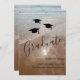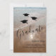 Skicka din familj och dina vänner det här moderna studenten-annonskortet. Den här designen har en strandscen med surfare i avstånd- och gradsocklar i luft. Anpassa med din egen namn, skola och år.