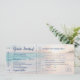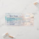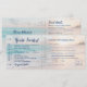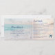 En allt-i-ett inbjudan till bröllop på stranden som ser ut som en ombordstigningskort/flygbiljett, med en sektion som gästerna KLIPPER av och skickar tillbaka som ett vykort för att svara. Ett vackert teal-, persika- och rosa solnedgångsfoto från havet finns i bakgrunden med en subtil palmlövdesign. *Ingen extra svarskuvert behövs för att gästerna ska skicka korten tillbaka. Den självfrankerade svarsdelen kräver billigare vykortsporto, vilket sparar dig massor på dina informella bröllopsinbjudningar på stranden. De kommer att få kvar en "stubb" att behålla med all viktig information om ditt bröllop, inklusive reseinformation eller boendeinformation som visas på baksidan. Varje del av denna mall för bröllopsinbjudan på stranden kan redigeras, från teckensnitt, textfärger och placering, klicka