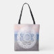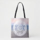 En underbar toetväska med min egen hand tillverkade teckningar! Denna formgivning skapades genom att en hand plockade mandala lades ovanpå ett fotografi av stranden vid solnedgången.