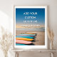 Bring calm, sun-soaked inspiration into your space with this customizable motivational poster. Featuring a serene tropical beach with palm trees and pastel surfboards, it sets a relaxed coastal mood that pairs beautifully with personal mantras, uplifting quotes, or meaningful messages.