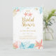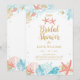 Vackert strandtema Blåstömningsinbjudan med korall, stjärnfisk och sjöhäckar. Anpassa med initialer för brud och rum och all händelseinformation. Färg i rosa, turkos och guld.
