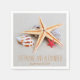 Vackra pappra servetter med stjärnfisk och årskal i sand som kan anpassas för din speciella dag. Kolla in IH-fotoarkivet för repetitionsinbjudningar, OSA kort, kuvertetiketter, bordsnummer, inbjudningar och andra produkter som matchar den här designen