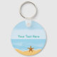 Innehavare av temat nyckel i en vacker strandbild med en söt stjärnfisk på sanden och textutrymme kan anpassa onlinen med ditt eget budskap i en design skapat för barn eller vuxnor som en gåva eller partiförmån och en budgetvänlig utformning.