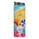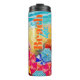 Vinkarare på en sandstrand, en surfare och solbadare under färgfulla paraplyer, har denna personlig termisk tumlare ditt namn och "Beach Life" på framsidan och baksidan, vilket budskap som helst på turkosremsan - vi visar "STAYING COOLA! KAN INNEHÅLLA NÅGON ANNAN DEL ÄN VATTEN." Roligt för sommar, semester eller gåva som gåva. MATCHING-objekt i vår samling.