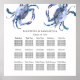 Skapa den perfekt som sitter arrangemang för ditt strandbröllop med det här fantastiska bord-sätesschemat som har en unik vattenfärgskrabba i Victoria Grigaliunas blå nyanser. Den här eleganten fångar det centrala i ett havsområde firande, med ett nautiskt, havsininspirerat tema som är perfekt för ett bröllop vid kusten. Oavsett om du väljer att beställa en tryckt skylt eller en praktisk digital utskrivbar fil, kommer detta sittdiagram att på ett utmärkt sätt leda gästerna till deras platser. Perfekt för att lägga till en personlig vid sätet i bröllop. Om du vill ha mer design går du till www.zazzle.com/dotellabelle.