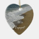 Anpassa den naturliga Beach Vi är engagerad i Hjärtformade Ornament med den personliga namnen av bruden och brudgummen för att vara och förlovning datum för att skapa en söt ett meddelande om förlovning eller en personlig keepsakgåva. Denna anpassningsbar är ett naturfotografi av det vita havsskummet från havets vinkara som kraschar på den gamla orchard-stranden i Maine.