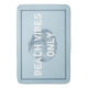 Temadesign för strandstuden med anpassadet "endast strandvibes" i tryckt vit stil, blå bakgrund och vintagens blå tonade årstidsillustration