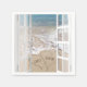 Öppna fönster med gardiner som förbiser Newlywes namn i strandhjärtan och sand med frodig surfa för bröllopsmottagning. Namn av nylweds är redigerbart.