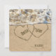 Hjärter i strandsand för inbjudan till strandbröllop med skräddarsydd namn i hjärtan.