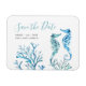 Bröllopet spara datum magneter har blå sjöar. Använda mallens fält om du vill lägga till anpassningsbarnas skrivningar. Om du vill se fler inbjudningar och idéer från bröllop går du till www.zazzle.com/dotellabelle Unik konst och design av Victoria Grigaliunas från Do Berätta A Belle.