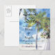 Se till att dina vänner och din familjs spara är speciella med BEACH WEDDING Spara datum meddelande, magneter, vykort, klistermärken, porto och personlig. En bild av en strandscen med blommor i handflatan träd och bröllop bord. Anpassadets text. Perfekt till ditt målbröllop! PinkInkArt-original!