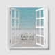 White open beach window with watercolor ocean surf.