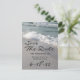 En strandbröllops inbjudan med en bakgrundsbild på framsidan av havsvågor som bryts mot stranden. Personifiera med era namn och datum.