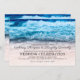 Elegant före bröllopsinbjudan med en tropisk sandskam, djupblått hav vinkarare och en modern bröllop-mall som är lätt att anpassa.