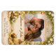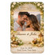 Beachside Garden is a dreamy save-the-date magnet that blends the elegance of a candlelit garden with the relaxed beauty of a seaside celebration. At the top, a lush arch of white roses and cascading greenery frames the “Save the Date” script, accented by glowing lanterns and delicate fairy lights. A central photo placeholder invites couples to showcase their favorite moment, while the lower section offers space for personalized details.