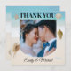 Fånga Joy från firande i havet med det här vackert designade tackkortet. Med mjuka vattenfärgaccenter från snäckor, vågar och tropiskt löv, och ditt favoritfoto från bröllop, är det perfektens sätt att uttrycka tacksamhet efter en intim strand- eller destinationsbröllop. Anpassa med namn, datum eller plats för ett verkligt hjärtligt sakens skull.