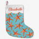 Få din ansvarredo för helgdagar med denna kust- julstrumpa! Den presenterar inspirerad sjöstjärnadesign för strand en stil i röda orangar. Det bästa har en vit langetterad look med personlignamn i orange text.