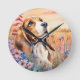 Beagle Dog Lover with Wildflower Meadow Rund Klocka