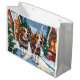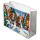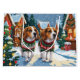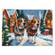 This festive design captures the joyful spirit of the holiday season, featuring an adorable dogs.Nestled in a winter wonderland, complete with a decorated Christmas tree, and beautifully wrapped presents. Snowflakes gently fall, adding a magical touch to the scene, while the vibrant colors of the holiday decorations create a warm and cheerful atmosphere.