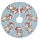 De kutaste beaglarna dekorerar denna träd-kjol med ljusblå bakgrund och guld glitter snöflingor.