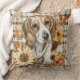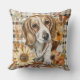 Beagle Hund Fall Vattenfärg Blommor Kudde
