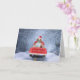 Beagle hund i snö som sitter i jul lastbil kort