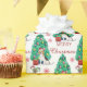 Det finns en vacker brun, svart och vit Beagle-hund som finns på Helgdag papper. Hund bär en röd och vit tomtehatt och sitter framför ett dekorerat Helgdag träd. Bilden upprepas över yta och det finns rött snöflingor och strimlade polkagrisar mellan bilder. Mellan bilder finns också en röd text som säger "God jul". Bilder placeras på vit bakgrund.