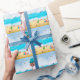 En beagle hund som sitter på stranden är en perfekt presentidé för någon som älskar denna hundras.
