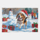En helgdag med hjärtslitande hund i snö, som bär en julhatt och omges av färgfulla presentlådor. I bakgrunden bygger barn snögubbe bredvid ett Julgran som är täckt av snö och skapar en glatt vinter under. Perfekt för att sprida helgdag och fånga julens magi.