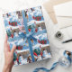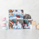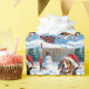 En helgdag med hjärtslitande hund i snö, som bär en julhatt och omges av färgfulla presentlådor. I bakgrunden bygger barn snögubbe bredvid ett Julgran som är täckt av snö och skapar en glatt vinter under. Perfekt för att sprida helgdag och fånga julens magi.