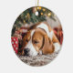 Denna berömvärda julprydnad med ett sovande Beagle ljugande under ett Julgran är en underbar gåva till vilket hund älskare som helst.