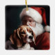 Beagle med Jultomten i julafton Julgransprydnad Keramik