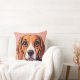 En beagle-hund med inkapslande brunt ögon, vibrerande markeringar och en rosa bakgrund visas nära. Representerar vänlighet, komplementaritet och kärlek för sällskapsdjur och är idealiskt för olika konstnärliga teman.
