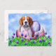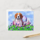 Fira Påsk med denna Beagle-kläckning från ett färgad ägg med samordnande tulpaner som växer runt.