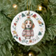 Den här söta Helgdag har en vattenfärgsbild av en beagles marionett som är klädd i hans vintersötare och hatt. Bilden är inramad i en färglös krans som består av olika Helgdag, inklusive snögubbe, klockor, candy cane, strumpor, holly och mycket mer! Baksidan av dekoratet har samma utandningsbild med anpassningsbarna i grönt, guld och rött.