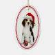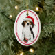 På framsidan av denna julprydnad finns en bild av en vacker svart och beagles valp med röd och vit tomtehatt. Valpen har hittat en Helgdag-lampa som ser ut som ett Jultomten kostym och är redo att spela. Bilden placeras på en vit bakgrund med en röd dubbla inklädd ovala ram. Baksidan av dekoratet har samma gräns ram med er anpassningsbar som finns i flera fält.