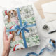Beaglehunden ha på sig en Santa hatt, fast han inte är lycklig om den, med en starry helgdag för jul för dekorationbakgrundshund älskare som slår in papper