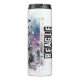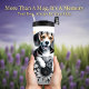 Ett glatt Beagle med sina tydliga markeringar i tre färg och ett lycklig med öppen mun är med glädje placerat mitt i en arrangemang av gråskalesolblommor och olika subtila blommar för lila och rosa. En ensam fjäril tillför den här konstnärliga blommigten porträtt en liten skönhet.