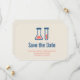 Spara datumkortet med en söt teckning i ett provrör och bägare. Perfekt för älskare.