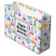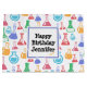 Giftpåse med roligt och färgfull mönster. Forskare vibe med bakers och flaskor av olika format och storlek i starkt lycklig färg.