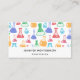 Affärskort med roligt och färglöst mönster. Forskare vibe med bakers och flaskor av olika format och storlek i starkt lycklig färg.