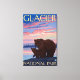Bear and Unge - Glacier National Park, MT - Vintage resor Poster skapades 2007. Bilden visar scener från Glacier National Park, MT.