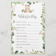 Bear themed babydusch önskemål för baby-spelkort har en vattenfärgstryck och vattenfärg, grön eukalyptus garland och handskrivet stil-typsnitt i elegant.