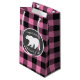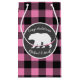 Utformning av babydusch med en björnsilhuett. Rosa buffalo-checken är underbar för en skog eller en nöjesbabydusch!