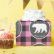 Utformning av babydusch med en björnsilhuett. Rosa buffalo-checken är underbar för en skog eller en nöjesbabydusch!