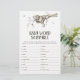 Bear Baby Shower-spel. Med söta, handmålade trädsdjur är det här babyduschspelet ett perfekt val för din skogstemannamusdusch. Den har en bedrövligt vismisk teckning med vildmarksbjörnar, rävar och bunnier. Sök efter matchande objekt i den moderna 'Barly Wait' Woodland Baby Shower Collection. (Nyckel-1. blöjor, 2. barnvagn, 3. nappar, 4. baby, 5. dyrbar, 6. rockstol, 7. crib, 8. mjölk, 9. bilsäte, 10. daghem, 11. formel, 12. stork, 13. bunt av glädje, 14. lullaby, 15. filt, 16. high stol, 17. dusch, 18. nalle, 19. bibb, 20. gummidamm)