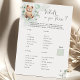 Det här babyvisarens spelkort kompletterar vår inbjudan till babyvisningsprogrammet "Vi kan vänta tidigt". Du hittar inbjudningar, Infoga och matchande objekt i min butik.