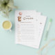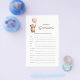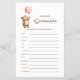 Add a touch of enchantment to your baby shower with this charming watercolor bear word scramble game flyer! The soft, earthy tones and the darling illustration of a bear with a pink balloon create a delightful and inviting atmosphere. This interactive game encourages guests to unscramble a list of baby-themed words, fostering fun and friendly competition. It's a wonderful way to keep your guests entertained and create lasting memories during your joyous occasion.