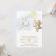 Oj, babyduschinbjudan med söt pojke björn och ballong på baby blue och guld. Den här babyduschinbjudan är lätt personlig med din händelseinformation.